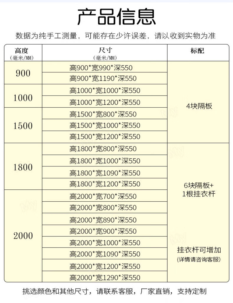 | 产品尺寸 | 长120cm;宽55cm;高150cm |