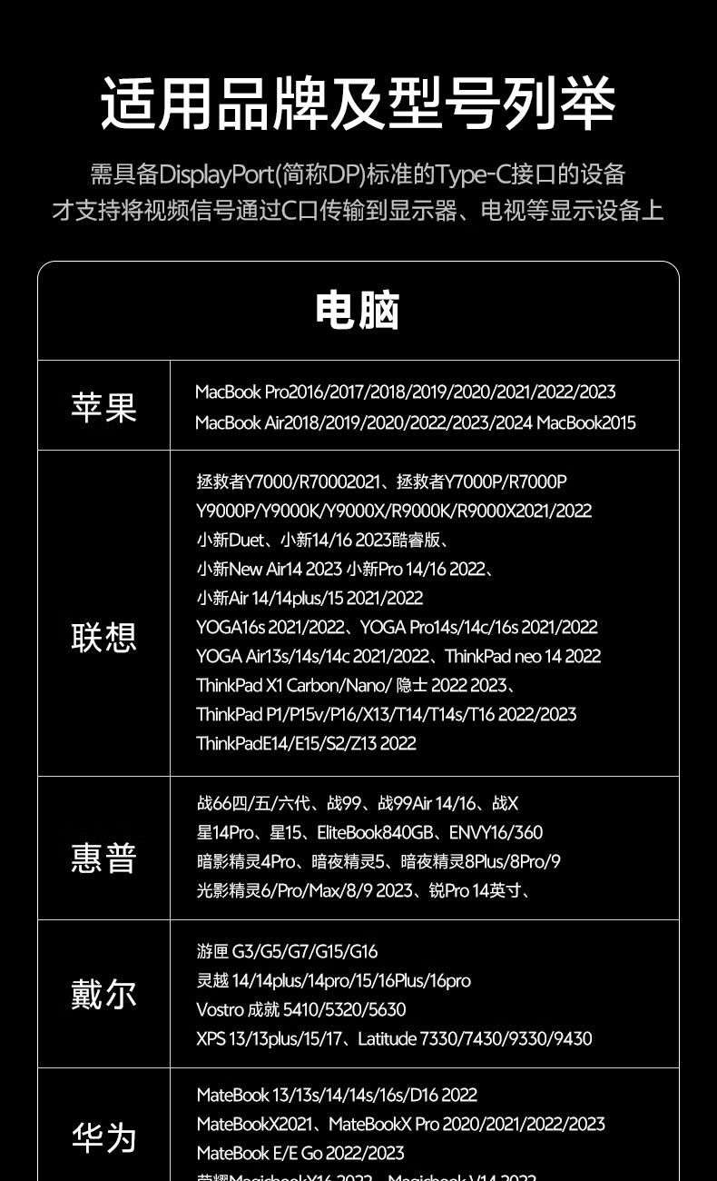 | 接口 | Type-c转DP |