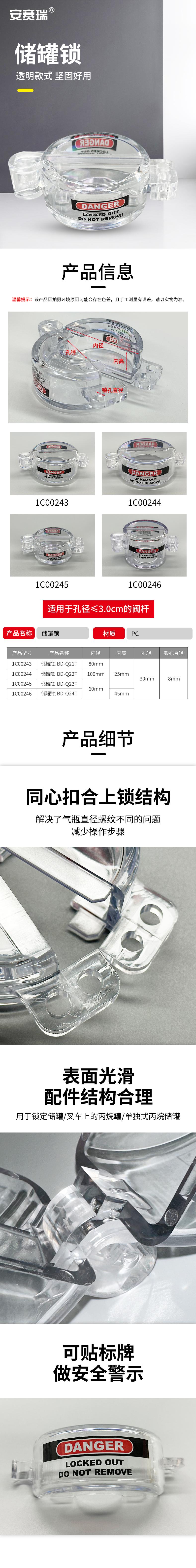 安赛瑞 1C00245 储罐锁 气阀安全锁具液化天然气阀门锁 内高25mm 透明款按个销售   收藏